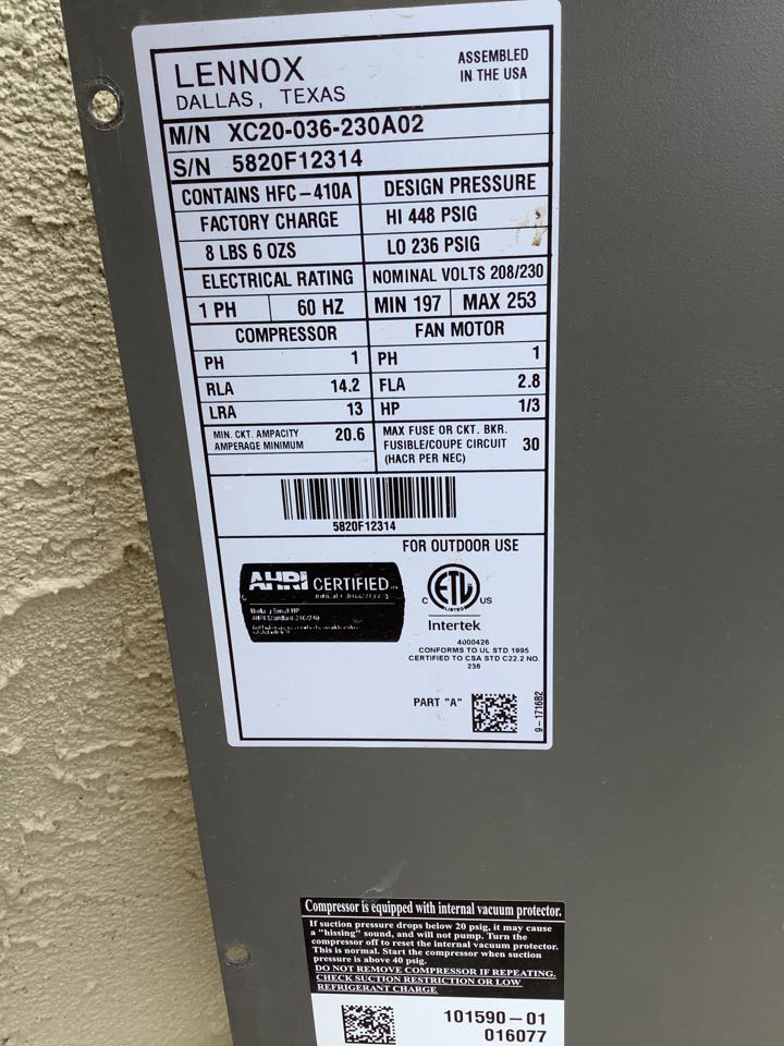 Lennox air conditioner inspection