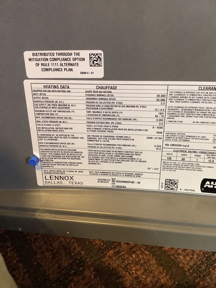 Install of fan powered humidifier.