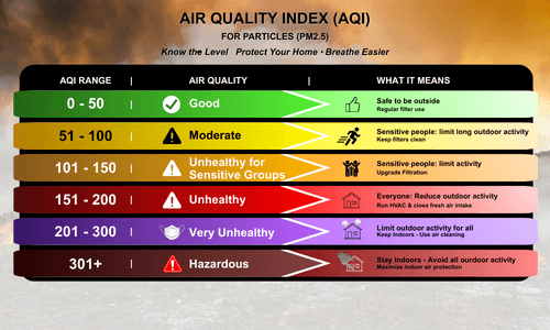 The key detail most homeowners miss? When AQI numbers stay elevated for days, fine particles can accumulate indoors as well. Simply closing the windows is not enough.